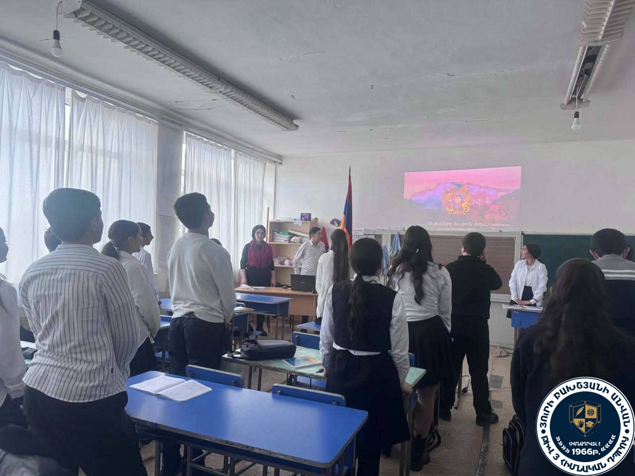 Գորիսի Յուրի Բախշյանի անվան հիմնական դպրոցի 8-րդ «Գ» դասարանում անցկացվեց հայրենասիրական ուղղվածությամբ բաց դաս՝ նվիրված Հայոց բանակի օրվան։ Դասը վարում էր «Հայաստանի պատմություն» առարկայի ուսուցչուհի Մերի Դանիելյանը։ Դասը մեկնարկեց ՀՀ օրհներգով, որին հաջորդեց թեմայի ներկայացումը։ Ներկայացվեցին դասի նպատակները՝ ծանոթանալ Հայոց բանակի ստեղծման պատմությանը, ընդգծել բանակի դերը պետության անվտանգության ապահովման գործում և կարևորել խաղաղության ու քաղաքացիական պատասխանատվության գաղափարները։ Դասի ընթացքում անդրադարձ կատարվեց Բանակի օրվա խորհրդին, Հայոց բանակի ձևավորման պատմությանը և հիմնական առաքելություններին։ «Մտագրոհ» փուլում աշակերտներն արտահայտեցին իրենց պատկերացումները բանակի դերի մասին։ Աշակերտներն աշխատեցին խմբերով՝ քննարկելով բանակին, խաղաղությանը և քաղաքացիական պարտքին վերաբերող թեմաներ։ Քննարկվեց նաև Լեռնային Ղարաբաղի բանակի և ազգային ազատագրական պայքարի թեման։ Դասն ուղեկցվեց ստեղծագործական ու երաժշտական հատվածներով, պատրաստվեց թեմատիկ պաստառ, հնչեցին հայրենասիրական խոսքեր և կատարումներ։ Այն ամփոփվեց եզրափակիչ խոսքով՝ ընդգծելով գիտակից քաղաքացու դերը ուժեղ պետության կառուցման գործում։