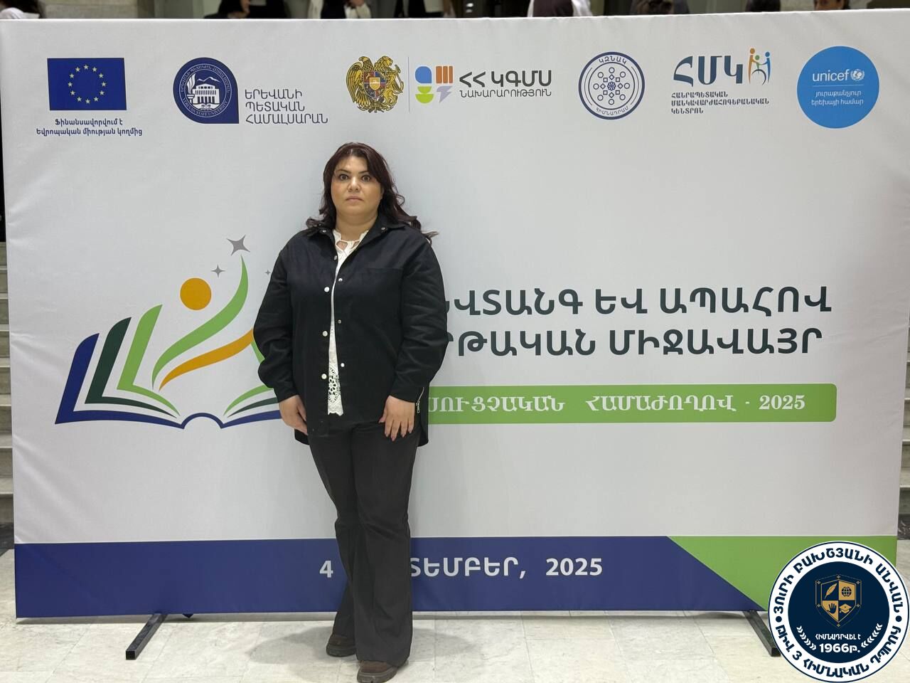 Ուսուցչի միջազգային օրվա նախօրեին Երևանի պետական համալսարանում տեղի է ունեցել «Անվտանգ և ապահով կրթական միջավայր» ուսուցչական համաժողովը, որը միավորել է հանրակրթության ոլորտի տարբեր մասնագետների՝ նպատակ ունենալով խթանել կրթական միջավայրի որակի բարձրացումը և ապահովության մշակույթի զարգացումը։ Միջոցառմանը մասնակցել են ԿԳՄՍ նախարար Ժաննա Անդրեասյանը, նախարարի տեղակալ Արաքսիա Սվաջյանը, ԿԶՆԱԿ հիմնադրամի տնօրեն Ժաննա Հարությունյանը, ԵՊՀ ռեկտոր Հովհաննես Հովհաննիսյանը, ՀՀ-ում ՅՈՒՆԻՍԵՖ-ի ներկայացուցիչ Քրիստինե Վայգանդը, ինչպես նաև ՀՀ-ում ԵՄ պատվիրակության միջազգային համագործակցության պատասխանատու Դավիթ Ավագյանը։ Համաժողովի հիմնական նպատակն էր հանրակրթության պետական չափորոշչի ներդրման առաջավոր փորձի տարածումը, ուսուցիչների մասնագիտական ներուժի համախմբումը և կրթական բարեփոխումների արդյունավետ իրականացմանն ուղղված գործնական քայլերի քննարկումը։ Բացման խոսքում ԿԳՄՍ նախարար Ժաննա Անդրեասյանը շնորհակալություն է հայտնել ուսուցիչներին՝ համաժողովին ակտիվ մասնակցության, կրթական համակարգի արդիականացման գործում ցուցաբերվող պատրաստակամության և միասնական ջանքերի համար։ Նա ընդգծել է, որ նման ձևաչափի հանդիպումները հնարավորություն են տալիս կիսվել լավագույն փորձով, բացահայտել նոր մոտեցումներ և համատեղ ձևավորել ավելի ապահով ու զարգացող կրթական միջավայր։ Գորիսի Յուրի Բախշյանի անվան թիվ 3 հիմնական դպրոցը ևս ներկայացված էր համաժողովում․ մասնակցել են դպրոցի տնօրենի պաշտոնակատար Սերգեյ Ավանեսյանը և մաթեմատիկայի ուսուցչուհի Արփինե Մարտիրոսյանը։ Համաժողովի շրջանակում անցկացվել է պլենար նիստ՝ «Անվտանգ կրթական միջավայրի ապահովումը կրթական բարեփոխումների համատեքստում» թեմայով, որը ներկայացրել է ԿԳՄՍ նախարարի տեղակալ Արաքսիա Սվաջյանը։ Այնուհետև տեղի է ունեցել պանելային քննարկում՝ «Ինչպես կառուցել վստահության, ներառականության և անվտանգության մշակույթ դպրոցում» թեմայով։ Քննարկումը վարել է ԿԳՄՍ նախարարության հանրակրթության վարչության պետ Թամարա Սարգսյանը։ Մասնակիցները հնարավորություն են ունեցել ընդգրկվել վեց թեմատիկ աշխատարաններում, որոնք նվիրված էին հոգեբանական անվտանգության, թվային անվտանգության, սովորողակենտրոն մեթոդների, հավասար հնարավորությունների և կրթական միջավայրի բարելավման հարցերին։ Սերգեյ Ավանեսյանը մասնակցել է «Թվային անվտանգություն» թեմայով աշխատարանին, որտեղ ներկայացվել են թվային ինքնության և հեղինակության պահպանման, ուսուցիչների թվային անվտանգության և արհեստական բանականության կիրառման արդի մարտահրավերները։ Արփինե Մարտիրոսյանը մասնակցել է «Սովորողակենտրոն մեթոդները՝ որպես երեխայի ապահովության և որակյալ կրթության երաշխիք» թեմայով աշխատարանին։ Քննարկման ընթացքում անդրադարձ է կատարվել աշակերտների ինքնուրույնության և հզորացման ձևավորմանը, ինչպես նաև դասասենյակների ֆիզիկական միջավայրի կազմակերպմանն ու բարելավմանը՝ ապահով կրթական միջավայր ստեղծելու նպատակով։ Համաժողովը ուսուցիչների համար դարձավ արդյունավետ հարթակ փորձի փոխանակման, նոր գաղափարների ձևավորման և կրթական համակարգի բարեփոխումների գործընթացում իրենց ներդրումն ունենալու համար։