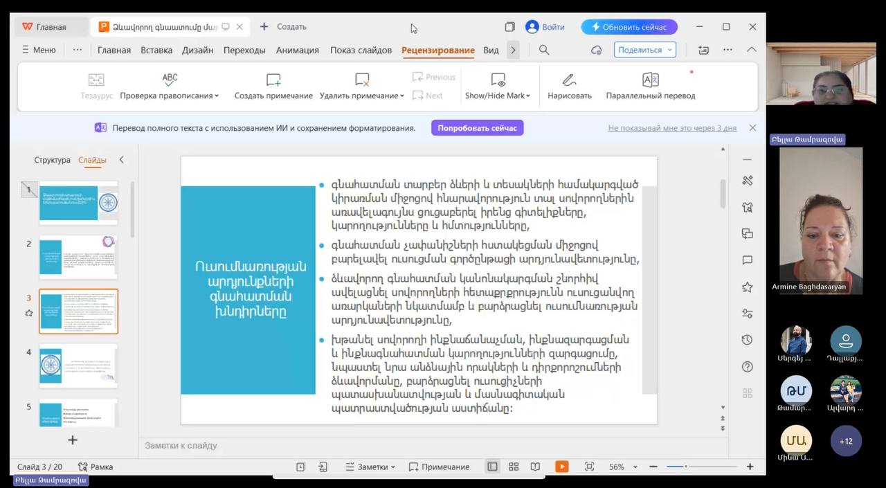 «Ձևավորող գնահատումը մաթեմատիկայի, հանրահաշվի և երկրաչափության դասերին» թեմայով վերապատրաստում՝ Գորիսի թիվ 3 հիմնական դպրոցի համակարգմամբ