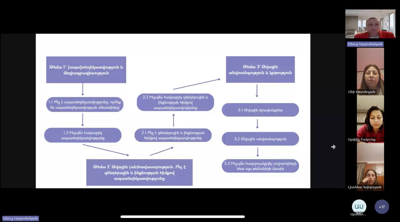 Նոյեմբերի 7-8-ին Գորիսի Յուրի Բախշյանի անվան թիվ 3 հիմնական դպրոցի համակարգմամբ և ԿԶՆԱԿ-ի կողմից սահմանված մենթորական ծրագրի շրջանակում կայացավ «Ապատեղեկատվության դեմ պայքար. ինքնության հիմքով ձևավորված կարծրատիպեր» թեմայով վերապատրաստման դասընթաց։ Դասընթացը վարեց մենթոր Անուշ Արզումանյանը։ Դասընթացին մասնակցեցին Գորիսի Յուրի Բախշյանի անվան թիվ 3 հիմնական դպրոցի կրթագոտու 15 դպրոցների 25 ուսուցիչ։ Վերապատրաստման ծրագիրը կառուցվել էր այնպես, որ միավորեր թե՛ տեսական, թե՛ գործնական բաղադրիչները։ Բացի թեմատիկ նյութի ներկայացումից, անցկացվել են իրավիճակային վերլուծություններ և ինտերակտիվ քննարկումներ, որոնք նպաստել են ուսուցիչների կողմից թեմայի խորքային ըմբռնմանը։ Այս ձևաչափը հնարավորություն է տվել մասնակիցներին կապել ներկայացվող բովանդակությունը սեփական դասավանդման փորձի հետ և գտնել այն գործնականում կիրառելու արդյունավետ ուղիներ։ Դասընթացի մեկնարկին և ավարտին անցկացվել են նախաթեստ և վերջնաթեստ՝ մասնակիցների գիտելիքների մակարդակի փոփոխությունը և վերապատրաստման արդյունավետությունը գնահատելու նպատակով։ Թեստավորումն իրականացվել է ինքնաշխատ եղանակով, ինչի շնորհիվ հնարավոր է եղել օպերատիվ կերպով ամփոփել արդյունքները և վերլուծել ուսումնական առաջընթացը։ Վերապատրաստման արդյունքում ուսուցիչները ոչ միայն համալրել են իրենց մասնագիտական գիտելիքները, այլև զարգացրել են համագործակցային և քննադատական մտածողության հմտությունները։ Իրավիճակային քննարկումները նպաստել են փորձի փոխանակմանն ու մասնագիտական երկխոսության մշակույթի ձևավորմանը։ Մասնակիցներից յուրաքանչյուրն ունեցել է արտահայտվելու, իր գաղափարներն ու փորձառությունները ներկայացնելու, ինչպես նաև գործընկերներից օգտակար խորհուրդներ ստանալու հնարավորություն։ Վերապատրաստման ծրագիրը լիարժեքորեն իրականացրեց իր նպատակները։ Մասնակիցները ձեռք բերեցին արդիական, գործնականում կիրառելի գիտելիքներ և հմտություններ, որոնք կարող են անմիջապես ներառվել դասավանդման գործընթացում։ Արդյունքում ձևավորվեց արդյունավետ մասնագիտական միջավայր, որտեղ ընդգծվեց ուսուցչի շարունակական զարգացման, նորարարական մոտեցումների կիրառման և ուսումնական որակի բարձրացման կարևորությունը։