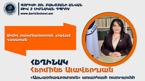 Գորիսի Յուրի Բախշյանի անվան թիվ 3 հիմնական դպրոցի «Աշխարհագրություն» առարկայի ուսուցչուհի Հերմինե Ալավերդյանը Բնագիտամաթեմատիկական առարկաների մեթոդմիավորման նիստի ընթացքում հանդես է եկել զեկուցուվ, որում ներկայացրել է «Ակտիվ ուսումնառություն. շրջված դասարան» թեմայով հետազոտական աշխատանքը։ «Ուսուցման մեթոդը» բարդ և բազմակողմանի հասկացություն է: Դա պայմանավորված է հենց ուսուցման գործընթացի բարդությամբ: Ակտիվ ուսուցումը ենթադրում է այնպիսի մեթոդների համակարգի կիրառում, որը ոչ թե նախատեսում է ուսուցչի կողմից պատրաստի գիտելիքի մատուցում, մտապահում և վերարտադրություն, այլ ուսուցման ակտիվ ճանաչողական և պրակտիկ գործունեության ընթացքում գիտելիքների և հմտությունների ինքնուրույն ձեռքբերում: Վերջինս իր մեջ ներառում է երեք կարևոր խնդիր` ինչ սովորեցնել (կրթության բովանդակություն), ինչու, ինչի համար սովորեցնել (կրթության նպատակները) և ինչպես սովորեցնել (ուսուցման մեթոդներ): Կրթության բովանդակությունը մատուցելու և կրթության նպատակներ իրականացնելու համար անհրաժեշտ են որոշակի մեթոդներ, հնարներ, ձևեր: Հանդիսանալով ուսուցման գործընթացի միջուկը` մեթոդը իրար է կապում ուսուցման նախապես պլանավորած նպատակը և վերջնական արդյունքը: Աշխատանքին կարող եք ծանոթանալ այստեղ: | |
