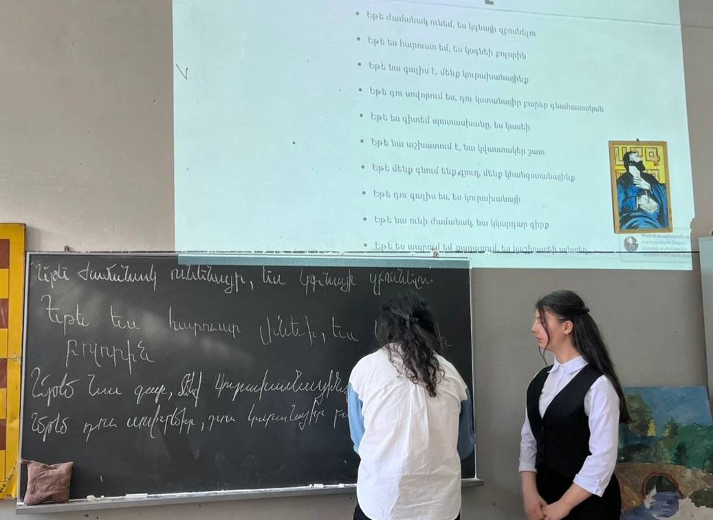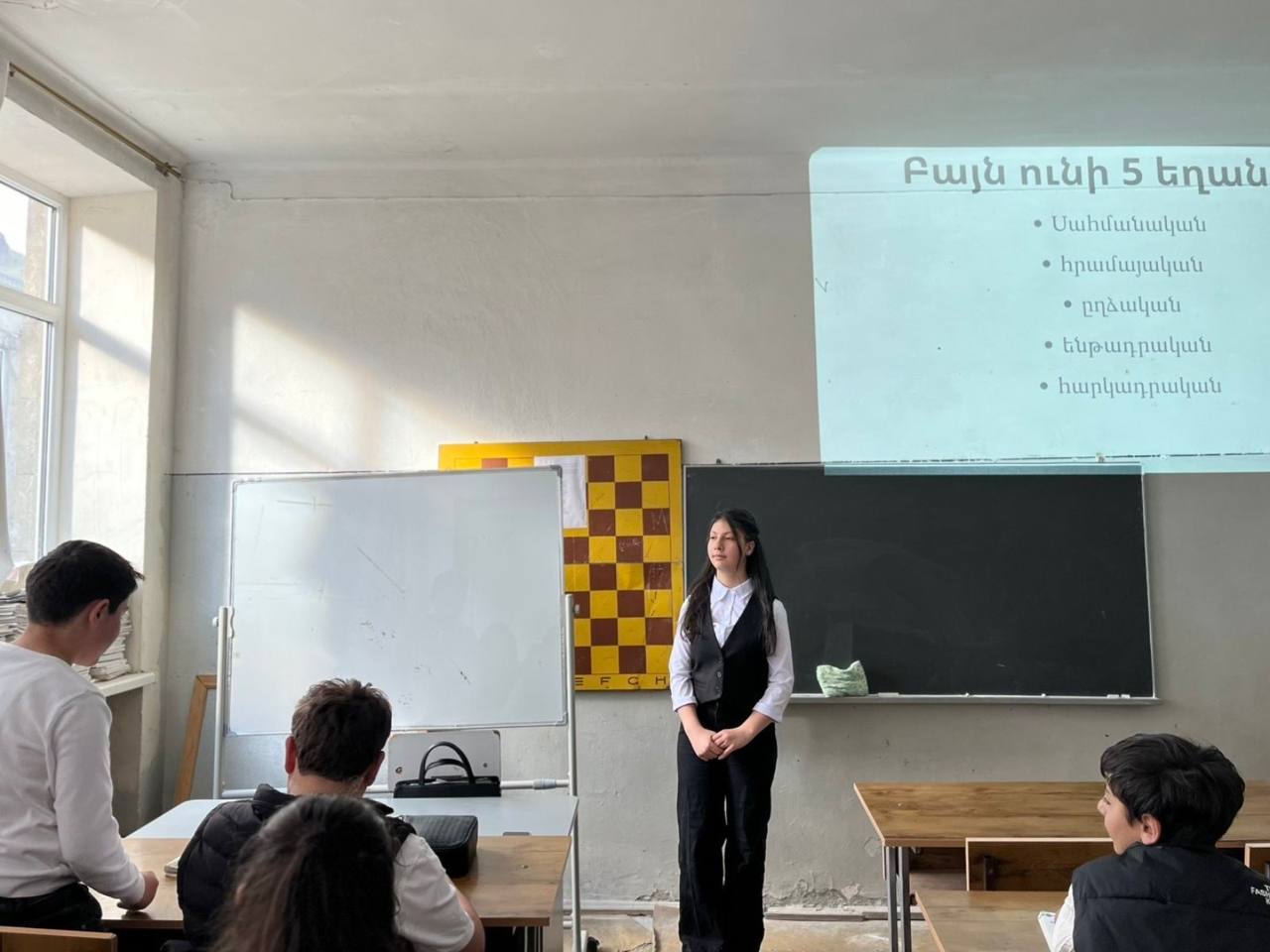 Գորիսի Յուրի Բախշյանի անվան թիվ 3 հիմնական դպրոցում անցկացվել է ուսումնական հետաքրքիր նախաձեռնություն՝ աշակերտական խորհրդի նախագահի մասնակցությամբ։ Աշակերտական խորհրդի նախագահ Միլենա Մելքումյանը, «Հայոց լեզու» առարկայի ուսուցչուհի Լիլիթ Սարգսյանի հետ համատեղ, 7-րդ «Բ» դասարանում վարել է «Բայի 5 եղանակները՝ ըղձական եղանակ» թեմայով դաս։ Դասի ընթացքում կիրառվել են ուսուցման ժամանակակից մեթոդներ՝ ապահովելով սովորողների ակտիվ մասնակցությունը։ Միլենա Մելքումյանի կողմից նախապես պատրաստվել էր սահիկաշար, ինչպես նաև մշակվել էին քարտային աշխատանքներ՝ ուղղված տեսական գիտելիքների ամրապնդմանը։ Գործնական առաջադրանքների միջոցով սովորողները հնարավորություն են ունեցել համակարգել և խորացնել իրենց գիտելիքները տվյալ թեմայի շրջանակում։ Նմանատիպ նախաձեռնությունները նպաստում են սովորողները ներգրավվածության բարձրացմանը, առաջնորդության հմտությունների զարգացմանը և ուսումնական գործընթացի արդյունավետ կազմակերպմանը։