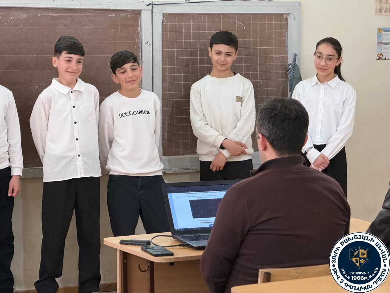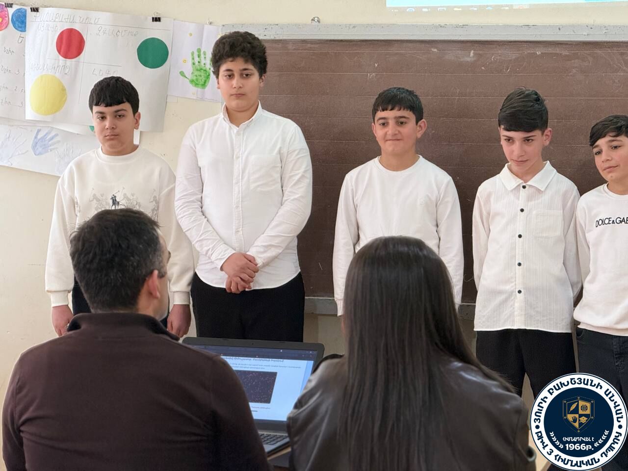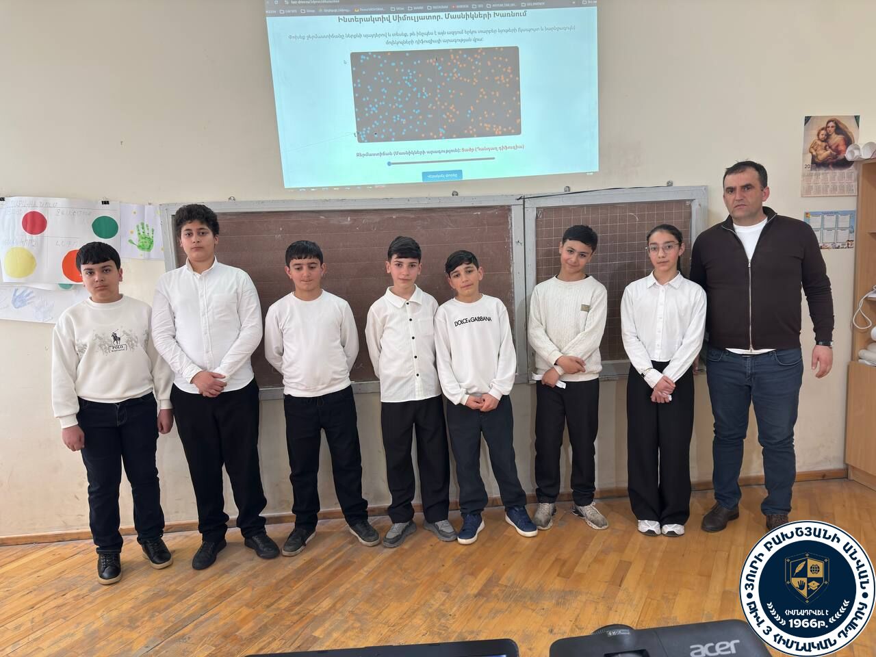 Ապրիլի 13-ին Գորիսի Յուրի Բախշյանի անվան թիվ 3 հիմնական դպրոցում տեղի ունեցավ նախագծային աշխատանքի պաշտպանություն: «Դիֆուզիան առօրյա կյանքում» թեմայով նախագծային աշխատանքը ղեկավարում էր «Ֆիզիկա» առարկայի ուսուցիչ Հայկ Օհանյանը։ Նախագծային աշխատանքն իրականացրին 7-րդ «Ա» դասարանի աշակերտներ Միհրան Գրիգորյանը, Հայկ Շեգունցը, Աշոտ Աթաբեկյանը, 7-րդ «Բ» դասարանի աշակերտներ Մոնթե Գևորգյանը, Գրիշա Խաչատրյանը, Տաթևիկ Պետրոսյանը, 7-րդ «Գ» դասարանի աշակերտներ Արսեն Հովհաննիսյանը, Յուրա Մանուչարյանը։ Միհրան Գրիգորյան (Վերլուծաբան-համակարգող) Կատարած աշխատանքը. ուսումնասիրել է ֆիզիկայի դասագրքի համապատասխան թեմաները (նյութի կառուցվածք, դիֆուզիա) և համակարգել խմբի հավաքագրած տեսական նյութերը: Ձեռք բերված հմտություններ և գիտելիքներ. զարգացրել է տեղեկատվության վերլուծության և տեսական գիտելիքը գործնական տվյալների հետ համադրելու հմտություններ: Ձեռք է բերել գիտելիքներ նյութի մասնիկային կառուցվածքի հիմնարար սկզբունքների վերաբերյալ: Տաթևիկ Պետրոսյան (Վերլուծաբան-համակարգող) Կատարած աշխատանքը. մշակել է վերջնական կայքէջի տեքստային բովանդակությունը և խմբագրել իրականացված գործնական փորձերի արդյունքներն ու եզրակացությունները: Ձեռք բերված հմտություններ և գիտելիքներ. ձևավորվել են տեղեկույթի համակարգման, համագործակցային աշխատանքի և թվային բովանդակության պլանավորման կարողություններ: Ձեռք է բերել գիտելիքներ մոլեկուլների անընդհատ և քաոսային շարժման առանձնահատկությունների մասին: Մոնթե Գևորգյան (Վիրտուալ փորձարար) Կատարած աշխատանքը. PhET ինտերակտիվ հարթակում վիրտուալ մոդելավորել է դիֆուզիան գազերում՝ տարբեր ջերմաստիճանային պայմաններում: Ձեռք բերված հմտություններ և գիտելիքներ. ձեռք է բերել վիրտուալ լաբորատորիայում աշխատելու, թվային մոդելավորման և տվյալների ֆիքսման (սքրինշոթեր) հմտություններ: Յուրացրել է գիտելիքներ ջերմաստիճանի և մասնիկների շարժման արագության միջև ֆիզիկական կապի վերաբերյալ: Հայկ Շեգունց (Վիրտուալ փորձարար) Կատարած աշխատանքը. PhET հարթակում մոդելավորել է դիֆուզիան հեղուկներում, փոխել է պարամետրերը և վերլուծել ստացված վիրտուալ արդյունքները: Ձեռք բերված հմտություններ և գիտելիքներ. զարգացրել է ՏՀՏ գործիքների կիրառման և վիրտուալ տվյալների վերլուծության կարողություններ: Ձեռք է բերել հիմնավոր գիտելիքներ հեղուկներում դիֆուզիայի ընթացքի առանձնահատկությունների մասին: Արսեն Հովհաննիսյան (Իրական փորձարար) Կատարած աշխատանքը. դպրոցում իրականացրել է թանաքի տարածման լաբորատոր փորձը տաք և սառը ջրով բաժակներում, գրանցել է արդյունքները: Ձեռք բերված հմտություններ և գիտելիքներ. ձեռք է բերել փորձարարական գործիքների հետ անվտանգ աշխատելու և դիտարկումների իրականացման գործնական հմտություններ: Ստացել է գիտելիքներ հեղուկներում դիֆուզիայի արագության վրա ջերմաստիճանի ազդեցության մասին: Յուրա Մանուչարյան (Իրական փորձարար) Կատարած աշխատանքը. կատարել է հոտի տարածման (օծանելիքի) դիտարկման փորձը դասասենյակում և ժամանակաչափով ֆիքսել արդյունքները: Ձեռք բերված հմտություններ և գիտելիքներ. զարգացրել է փորձերի դիտարկման, չափիչ սարքերից ճիշտ օգտվելու և արդյունքների արձանագրման հմտություններ: Ձեռք է բերել գիտելիքներ գազային միջավայրում դիֆուզիայի արագության և դրսևորման վերաբերյալ: Գրիշա Խաչատրյան (Իրական փորձարար-փաստագրող) Կատարած աշխատանքը. լուսանկարել և փաստագրել է խմբի կողմից իրականացված բոլոր ֆիզիկական փորձերը՝ ապահովելով տեսողական նյութեր նախագծի կայքէջի համար: Ձեռք բերված հմտություններ և գիտելիքներ. ձևավորվել են թվային լուս